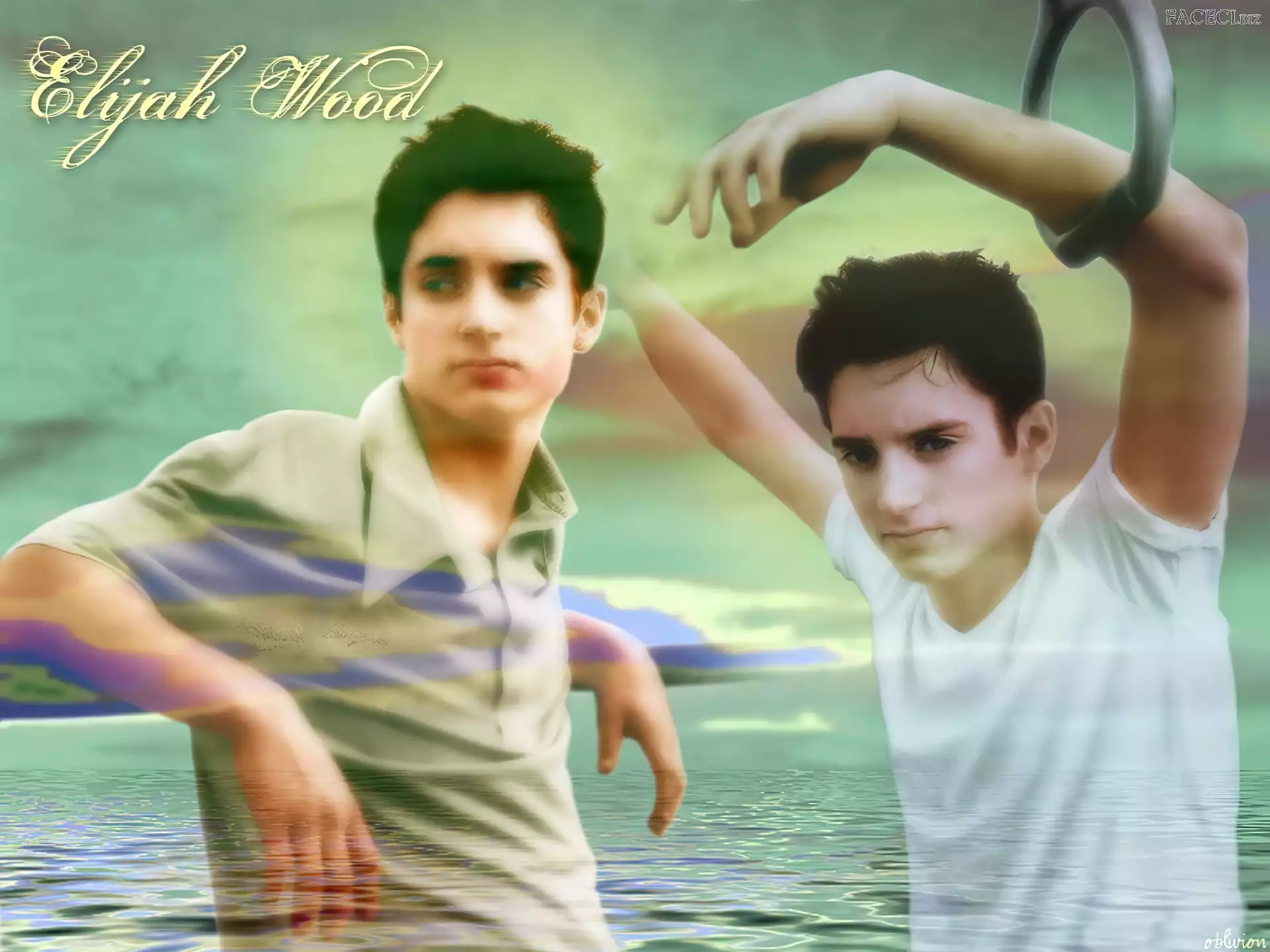 woda, Elijah Wood, biały t-shirt